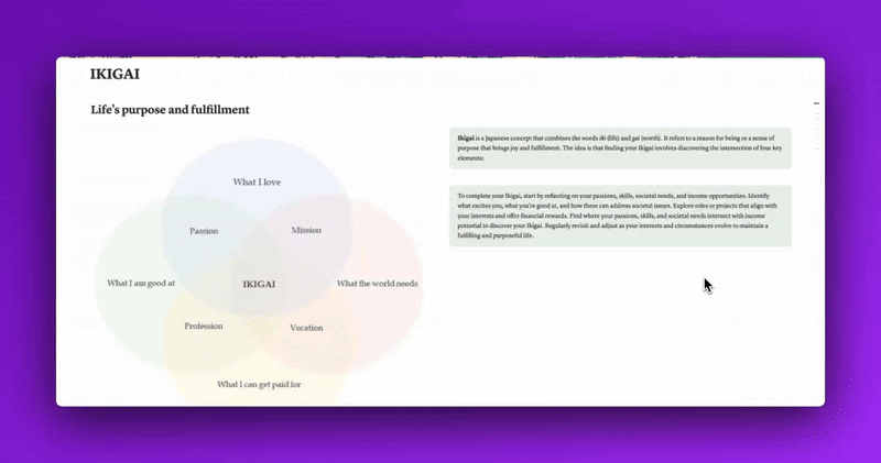 Ikigai is one of my all-time fave ways of doing this. It’s simple & quick. Here’s a template I use: