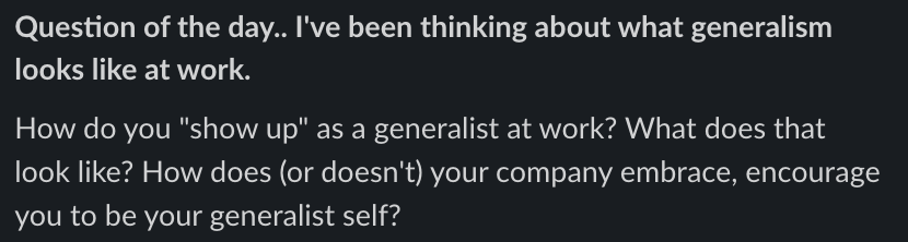 Join the most-loved community of career generalists. The place where you find your people, belonging, lots of learning and maybe even your next gig (and have lots of thought-provoking conversations just like this one!).