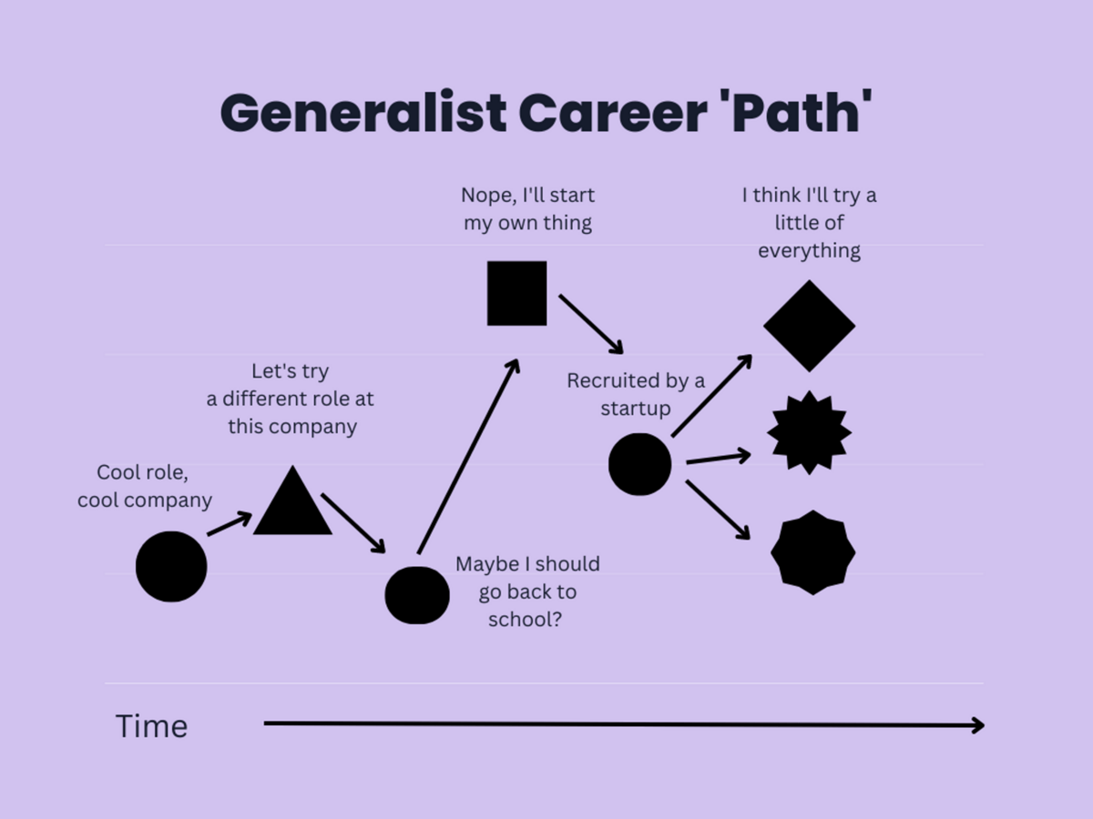 Hey generalists! Does your career ‘path’ look a little something like this? A zig-zaggy map marked by hops and jumps? If you've been in your current role for a while and feel like you're no longer growing or advancing in your career, you may have hit a career plateau. This can be especially common for Generalists who have a broad range of skills but may not have a clear path for advancement within their organization.