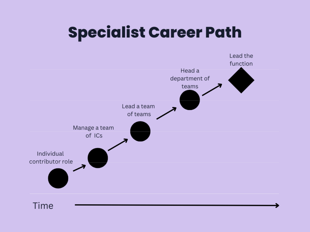 Contrast this with a more linear specialist path where a plateau is marked by not getting promoted.