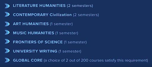 What does a curriculum like that look like? Itโs been over 15 years since my first Core class, so even I needed a refresher. Here's the breakdown from my alma mater: